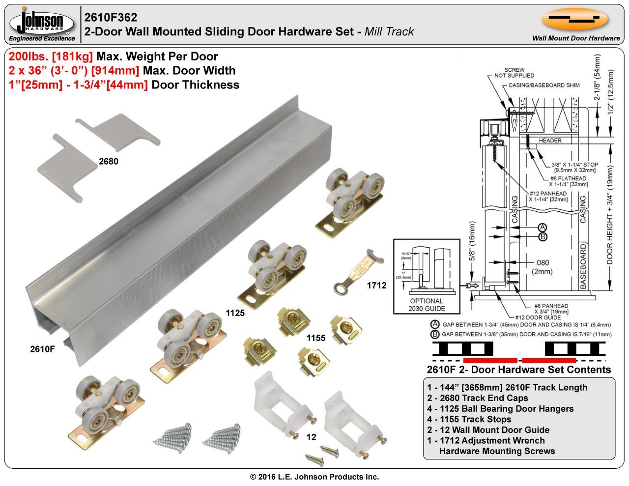 | Hardware Sets | 2-Door Converging |