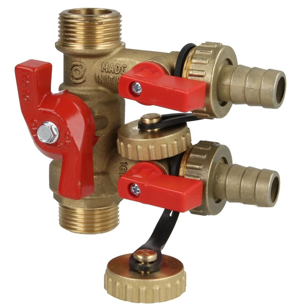 MS-kogelkraan 1/2"-1" IS/IS, aftap punt en rode hendel van staal, PN 25, MS 58
