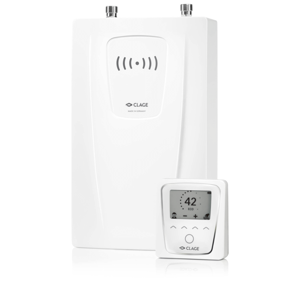 Clage kleine doorstroom waterverwarmer MCX 7, elektronische temperatuurregeling, geschikt voor gebruik met zonneboilers.