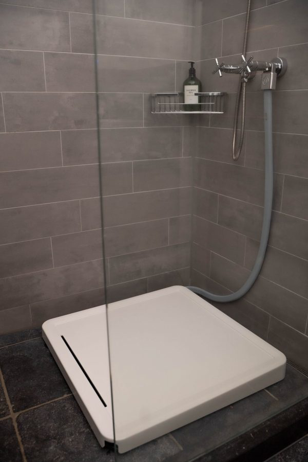- Er is op de douchevloer minimaal 80 x 80 cm vrije ruimte om de Flatmate te plaatsen.