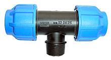PE T stuk verloop buitendraad Model 25 x 3/4" IS x 25 mm
