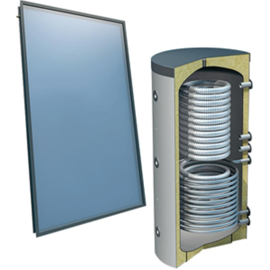 Set: 'O4SP2-300H1' - 4plus 2 x vlakkeplaatcollector voor platdak 300 liter hygiëneboiler