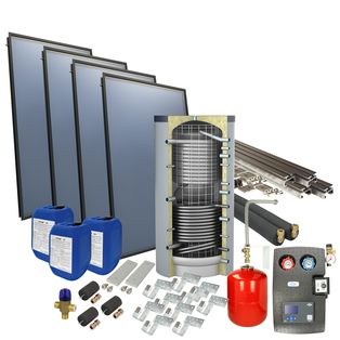 Set: 'O4SP2-300H1' - 4plus 2 x vlakkeplaatcollector voor platdak 300 liter hygiëneboiler