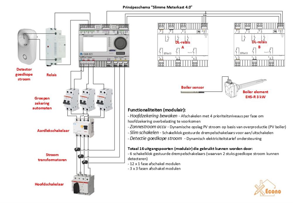 De “Econo Slimme Meterkast 4.0” (ESM4) is een Energiebeheersysteem (zie ook de handleiding bij het tabje downloads).
