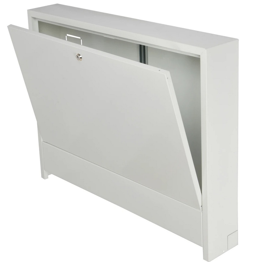 Deze duurzame opbouwkast voor verwarmingscircuitverdelers is ontworpen voor een verzorgde en veilige plaatsing van verdelers op muren of wanden. Ideaal voor situaties waar inbouw niet mogelijk is, maar toch een nette afwerking gewenst is.